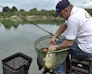 Дедушка отдает удилище нашему рыболову.