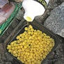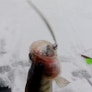 -"Надо что-то менять!"; - думаю я, возвращаясь к своим лункам, и решаю уменьшиться в размере блесны. Ставлю "Прыщ" № 5, минут пять загоняю его ко дну, периодически подбрасывая и покачивая. После каждого подброса уходит около двух с половиной метров лески...вот уже 7 метров сбросил...наконец-то "прыщ" стал наподольше задерживаться у дна...Качаю с подъемом...БАЦ в руку! Есть!